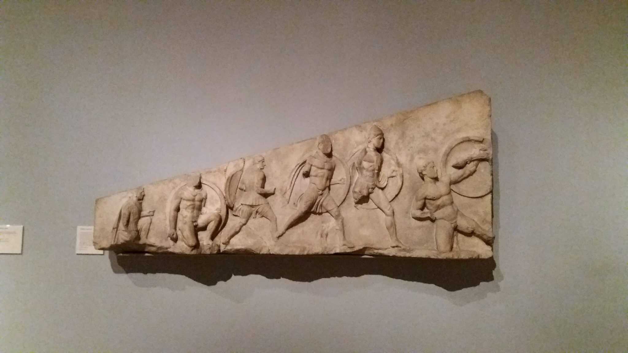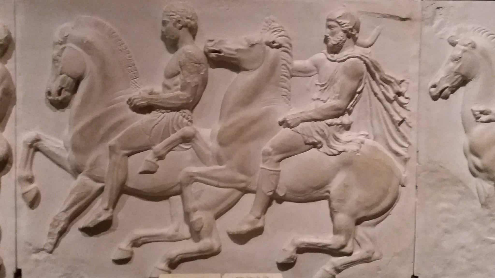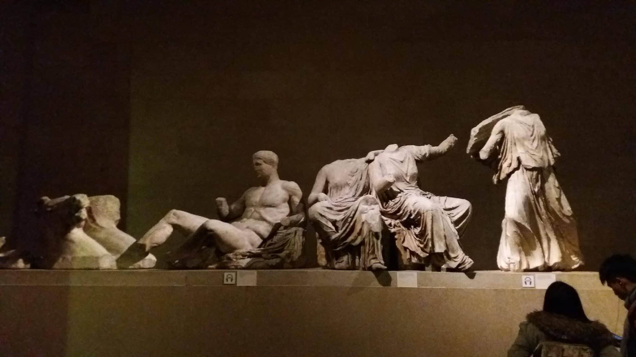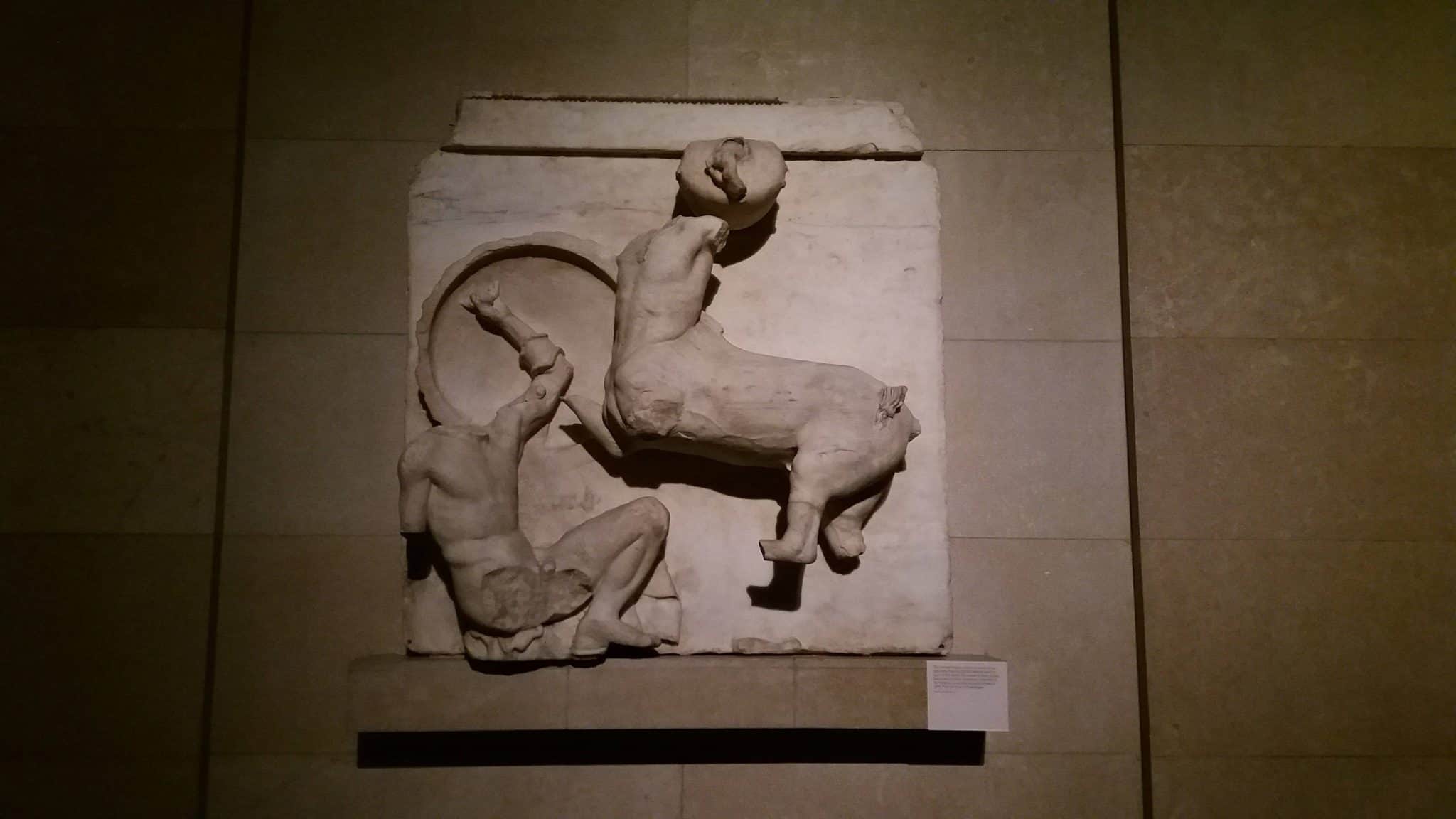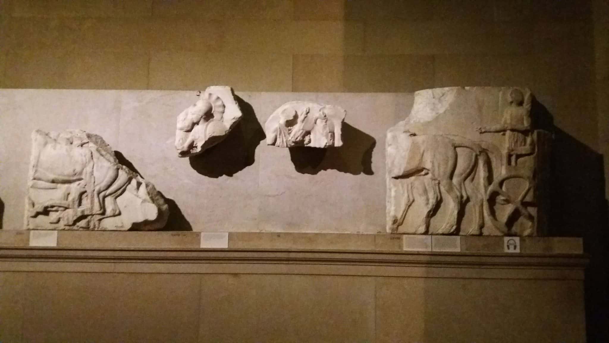 W sali poświęconej Partenonowi w Muzeum Akropolu zobaczycie rekonstrukcję fryzu Partenonu. Odlewy rzeźb, które znajdują się w Muzeum Brytyjskim lub w innych muzeach na całym świecie, odznaczają się białym kolorem od oryginałów, które mają bardziej żółty kolor. W Muzeum Brytyjskim znajduje się ok. 50% wszystkich rzeźb Partenonu oraz jedna kariatyda. Niektóre rzeźby znajdujące się w Muzeum Brytyjskim zobaczycie na poniższych zdjęciach.