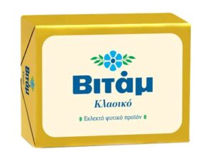 Innym produktem spożywczym używanym często do wypieków jest Bιτάμ /witam/ – marka margaryny. Historia marki sięga roku 1947 roku, gdy na rynku greckim pojawiła się pierwsza margaryna wyprodukowana z tłuszczów roślinnych i była w przystępnej cenie. Dzisiaj pod marką Βιτάμ znajdziemy zarówno margarynę, jak i masło oraz napoje mleczne, ale nazwa ta już na zawsze będzie się kojarzyła Grekom z margaryną (choć spotkałam się też z tym, że dla niektórych Βιτάμ to masło).