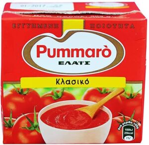 Pummaro to nazwa znana każdej greckiej gospodyni. W 1990 roku grecka firma zajmująca się przetwórstwem pomidorów wprowadziła na rynek pierwszy przecier pomidorowy zapakowany w kartonik. Od wtedy wszystkie podobne produkty w Grecji zyskały miano Pummaro (czasami zapisywane jako πουμαρό /pumaro/).