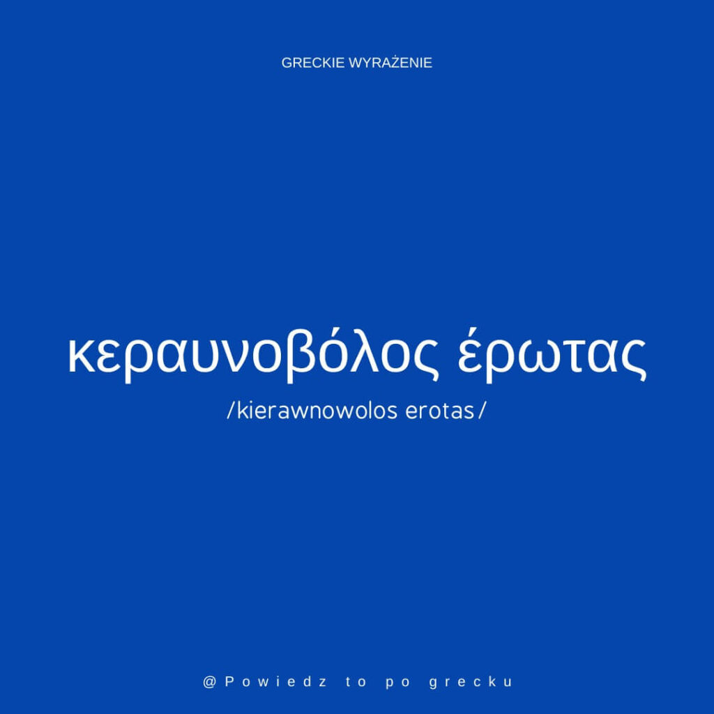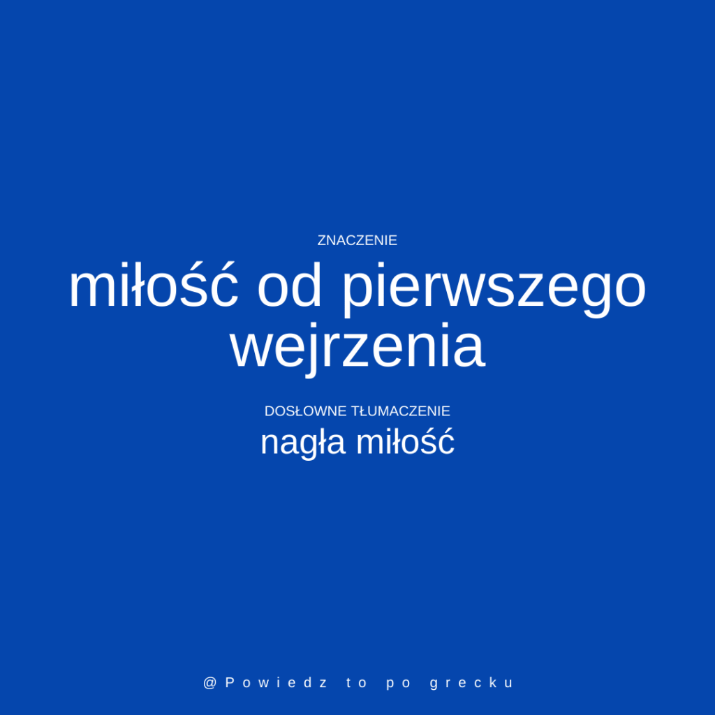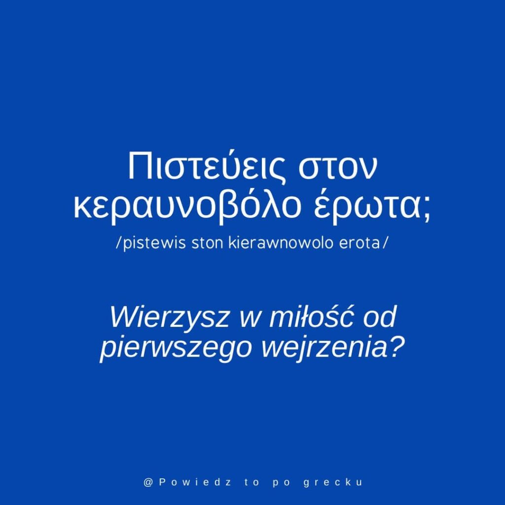 Κεραυνοβόλος έρωτας, czyli miłość od pierwszego wejrzenia. Można też powiedzieć έρωτας με τη πρώτη ματιά (miłość od pierwszego spojrzenia).