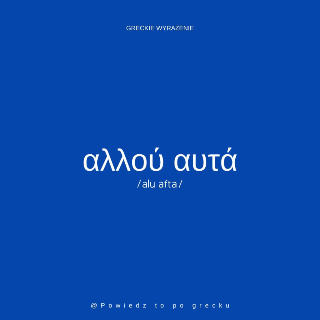 Wyrażenia αλλού αυτά używa się w znaczeniu „nie wierzę ci”, „nie nabierzesz mnie”, „nie ze mną te numery”.