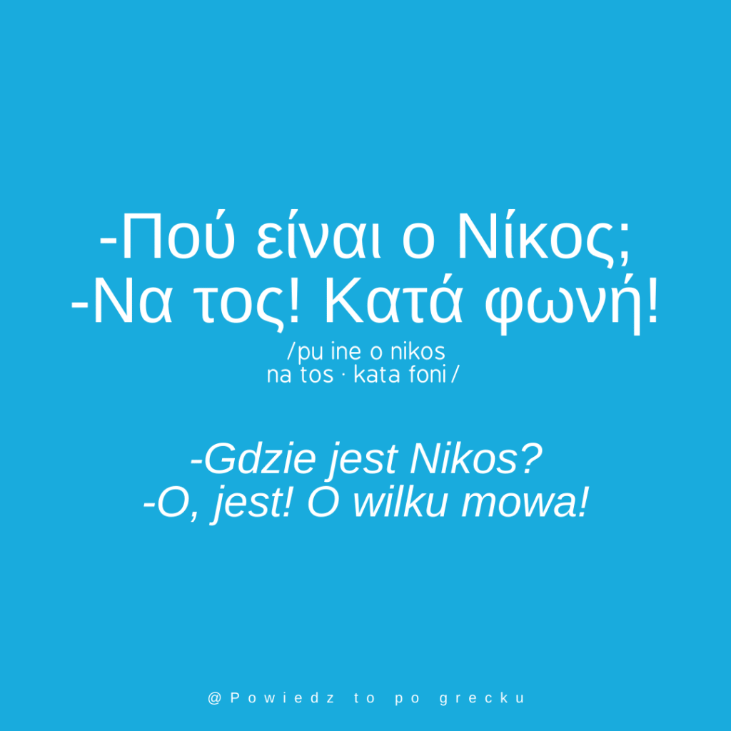Gdy nagle zobaczymy kogoś, o kim akurat mówiliśmy, powiemy κατά φωνή – odpowiednik polskiego zwrotu „o wilku mowa”.