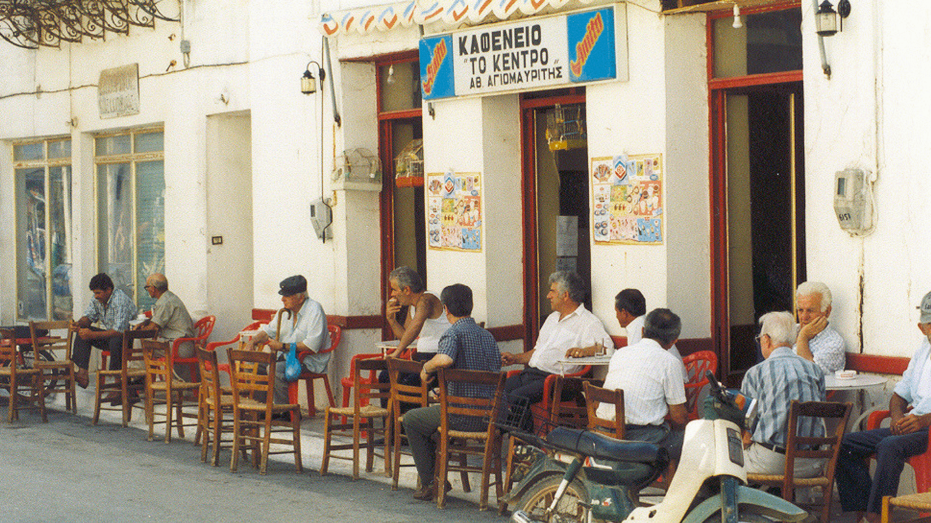 Tradycyjną kawę grecką, czyli ελληνικός καφές /elinikos kafes/ najlepiej wypić w καφενείο /kafenijo/. Jest to miejsce spotkań mężczyzn, głęboko zakorzenione w tradycji greckiej. W takim lokalu podawana jest głównie kawa i alkohol, przy których mężczyźni rozprawiają o życiu, o polityce i o piłce nożnej. Kobiet tam się raczej nie spotka.