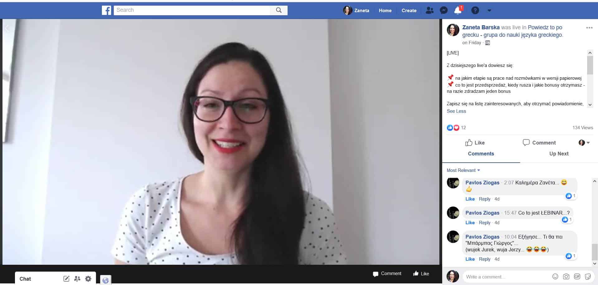 W ostatni dzień maja udało mi się przeprowadzić live w grupie na Facebooku, gdzie opowiedziałam o postępach prac nad rozmówkami oraz o książkach do nauki greckiego. Mimo że nadal jestem bardzo zestresowana podczas tych spotkań, bardzo je lubię i po zakończeniu gratuluję sobie, że po raz kolejny przełamałam swój strach.